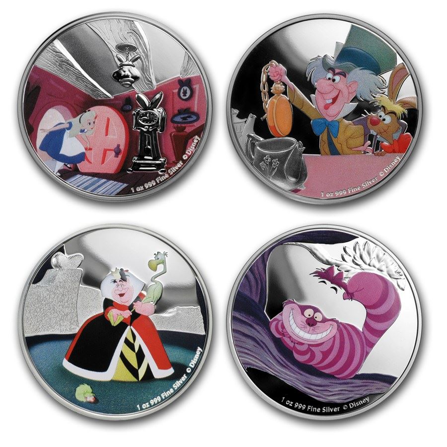 2018 Niue 1 oz Silver $2 Disney Alice in Wonderland 4-Coin Set