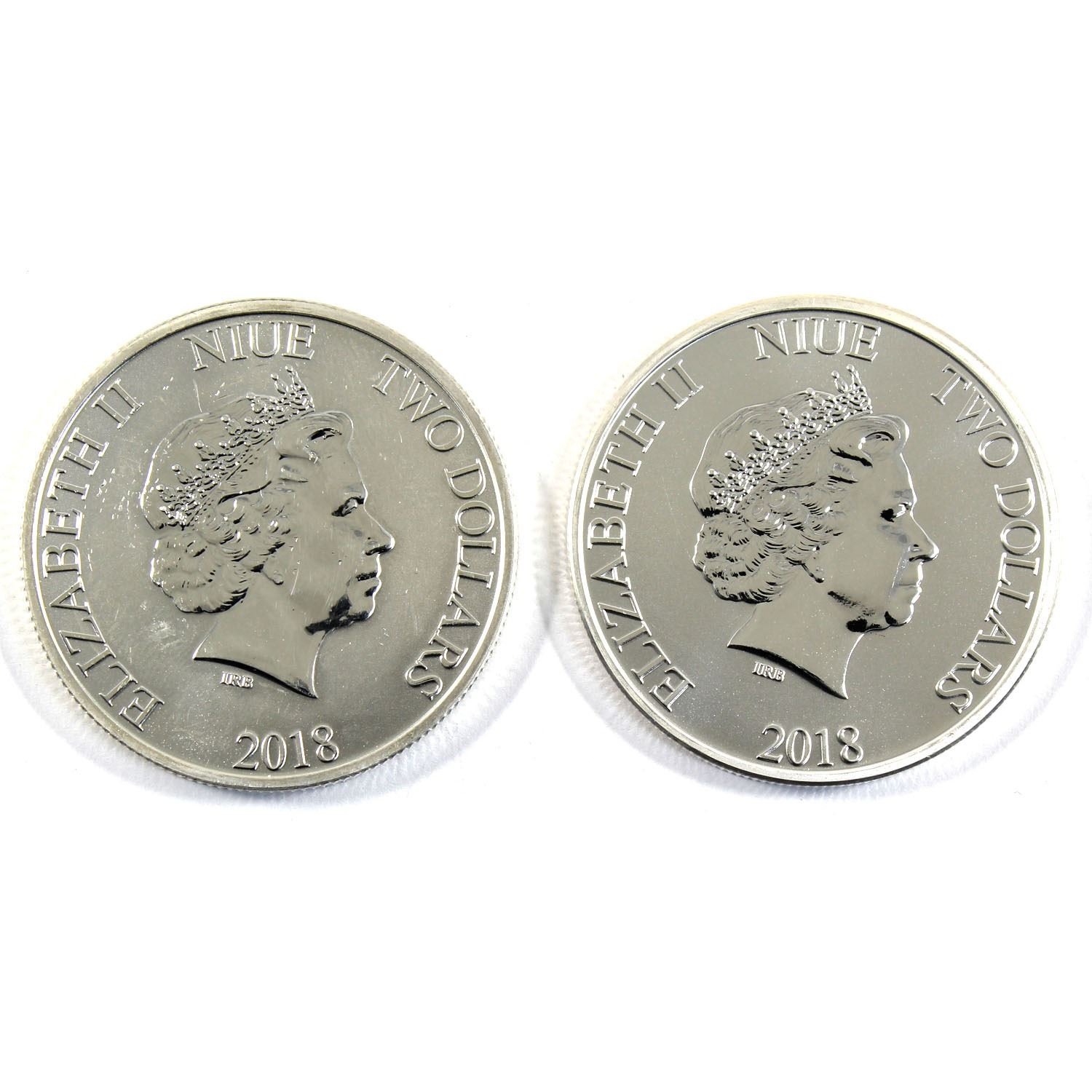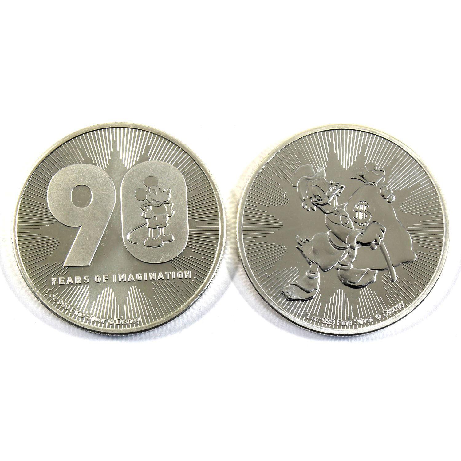 2018 Niue Scrooge McDuck & Mickey Mouse 90 Year of Imagination 1oz .999 Fine Silver Coins (Mickey Mouse is lightly toned). 2pcs (TAX Exempt)