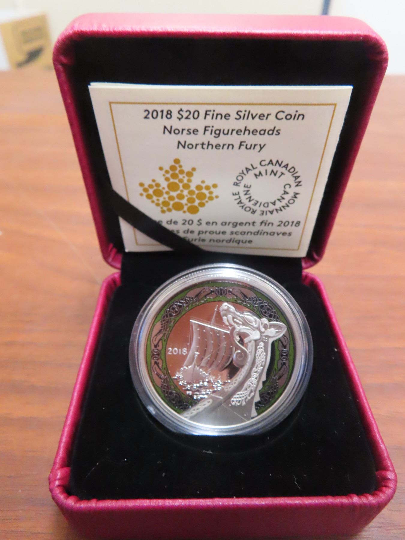 2018 Norse Figureheads: Northern Fury $20. Coloured. 99.99% pure Silver. Proof with Ultra Heavy Cameo. Housed in its original Royal Canadian Mint case & box of issue. Includes Certificate of Authenticity.