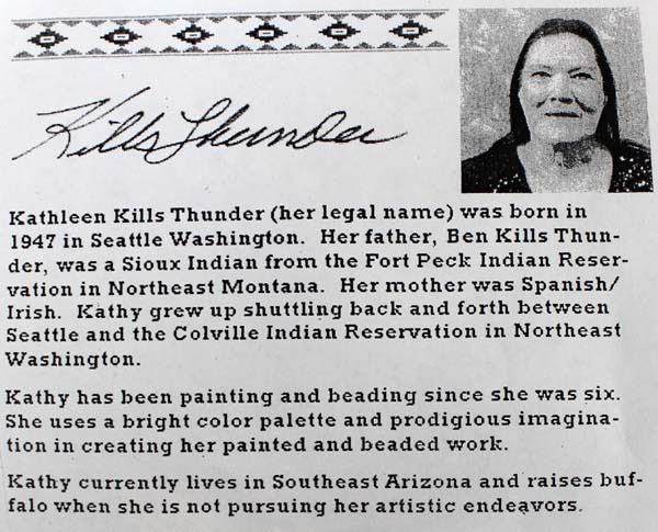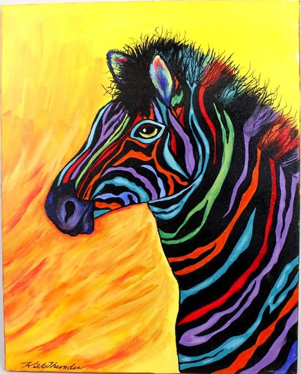 2018 Original Acrylic Painting ''Kenyan Wonder'' by Kathy Kills Thunder, measures 16'' x 20, Artist Bio: Kathleen Kills Thunder (her legal name) was born in 1947 in Seattle, WA. Her father, Ben Kills Thunder, was a Sioux Indian from the Fort Peck Indian Reservation in NE Montana and her mother was Spanish/Irish. Kathy has been painting and beading since she was six.