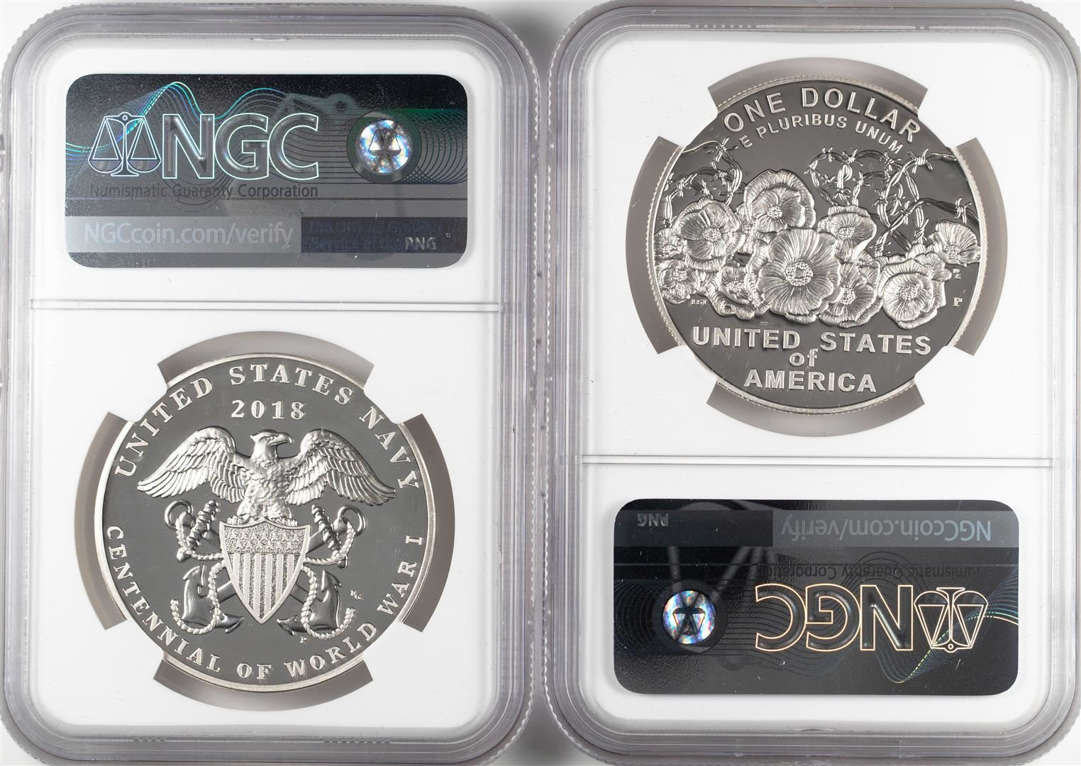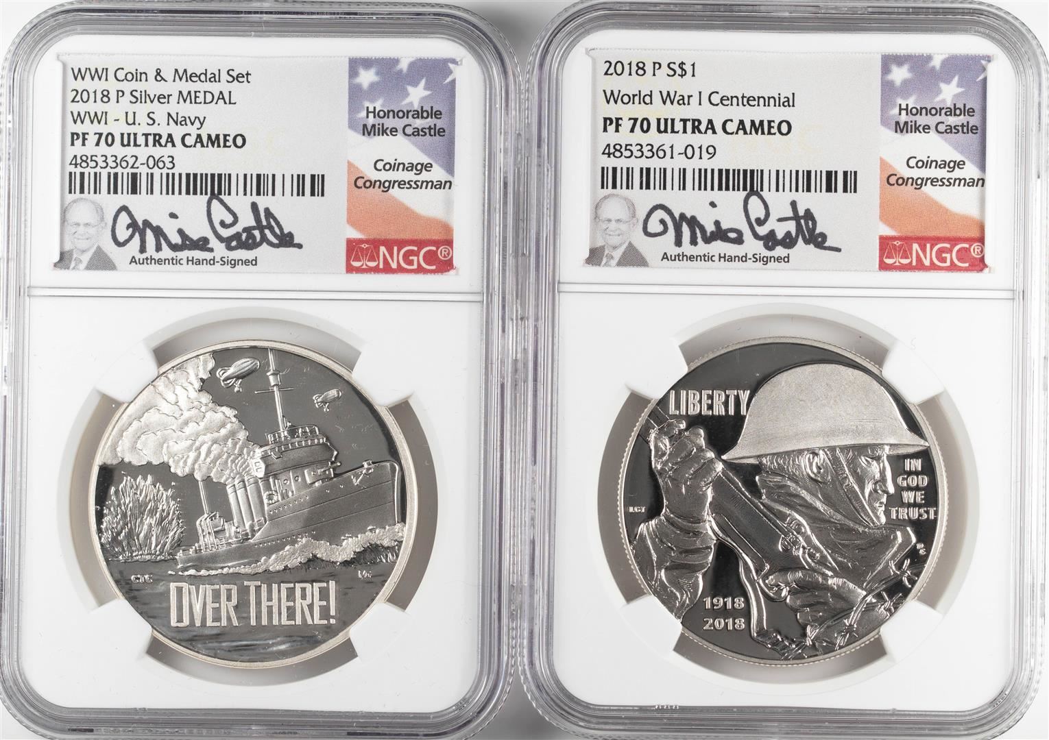 2018-P Proof $1 WWI Centennial Coin & Navy Medal Set NGC PF70 Ultra Cameo Mike Castle