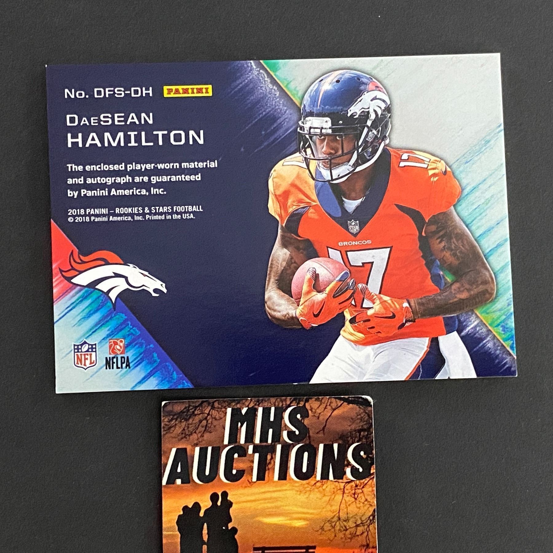 2018 PANINI PATCH/AUTO CARD DAESEAN HAMILTON FOOTBALL CARD #13/25