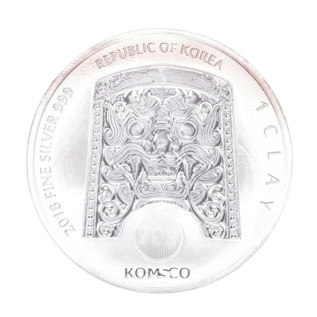 One 2018 Republic of Korea 1 Clay 1 Troy Ounce .999 Fine Silver Round.