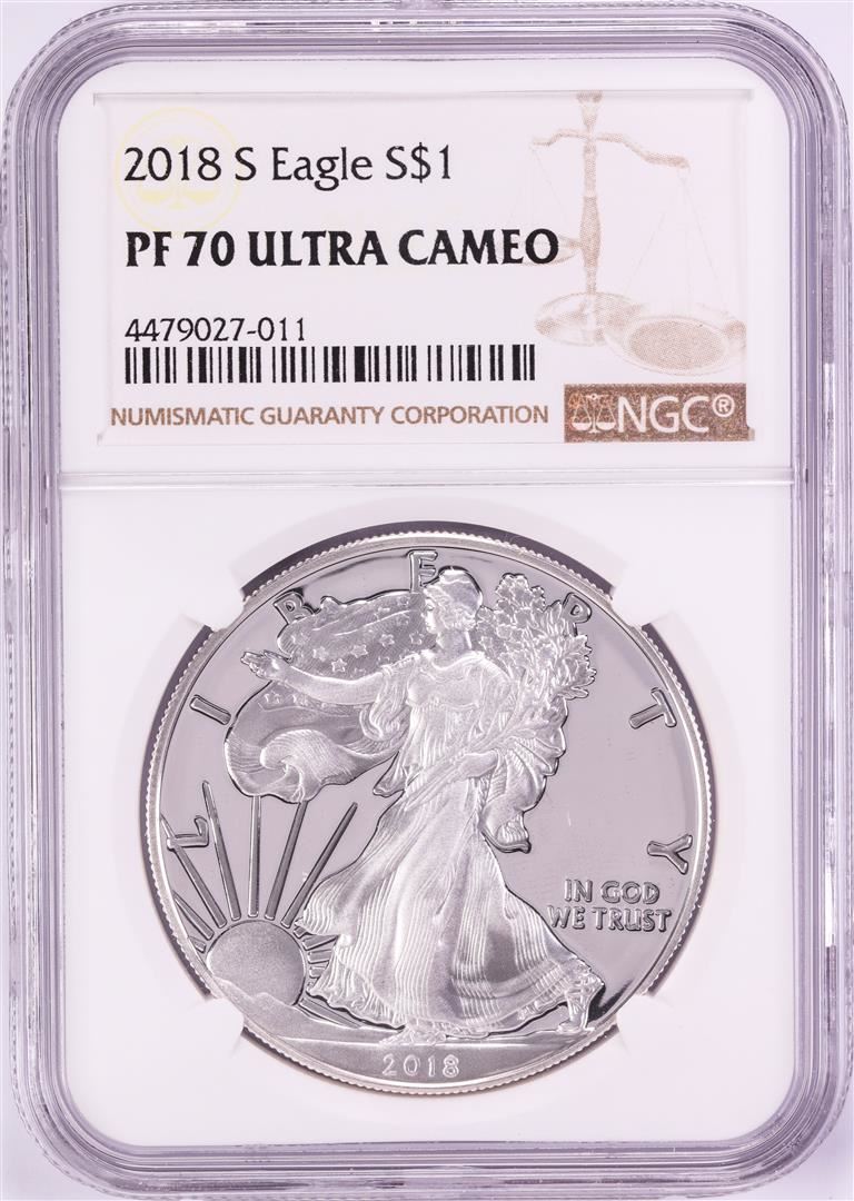 2018-S $1 Proof American Silver Eagle Coin NGC PF70 Ultra Cameo