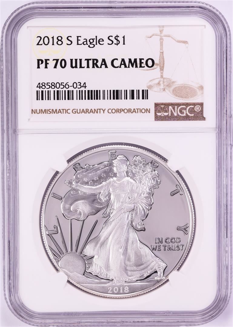 2018-S $1 Proof American Silver Eagle Coin NGC PF70 Ultra Cameo