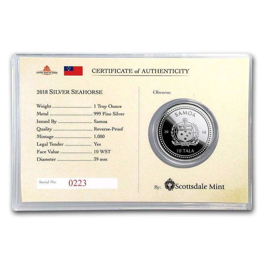 2018 Samoa 1 oz Silver Seahorse Reverse Proof Like Coin