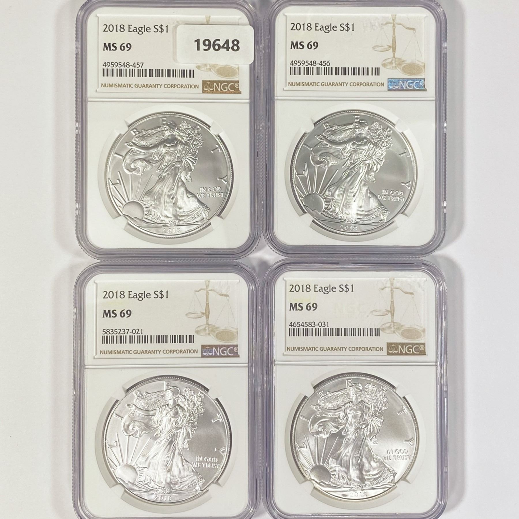 2018 Set (4) American Silver Eagles NGC MS69
