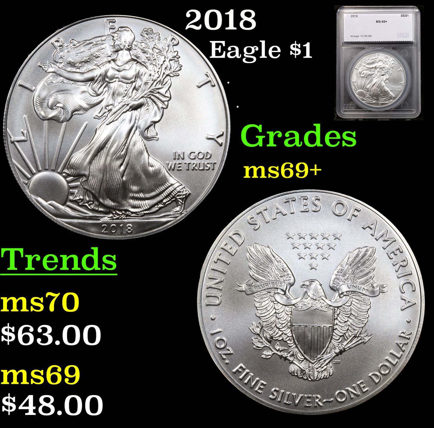 2018 Silver Eagle Dollar $1 Graded ms69+ By SEGS.