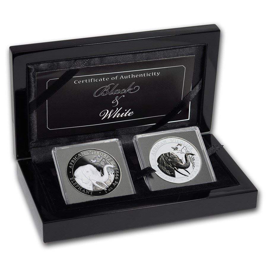 2018 Somalia 2-Coin 1 oz Silver Elephant Black & White Set