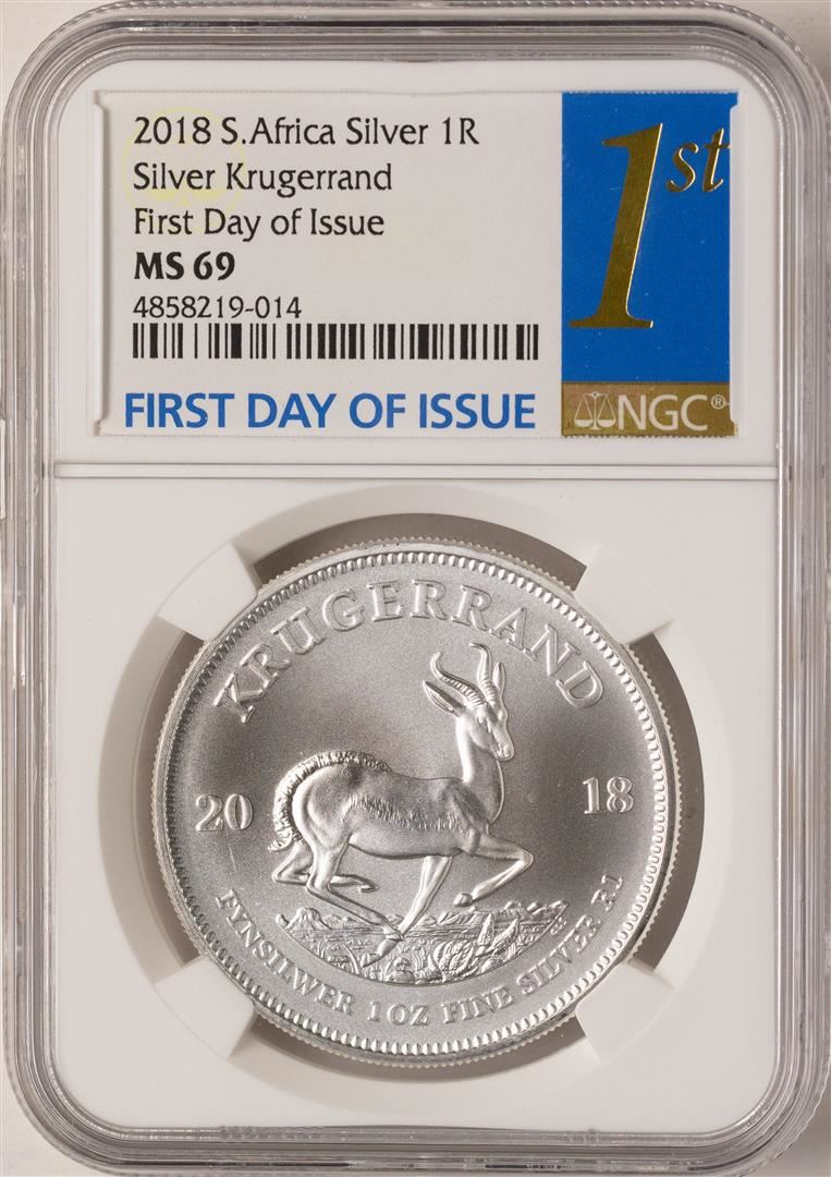 2018 South Africa Krugerrand Silver Coin NGC MS69 First Day of Issue