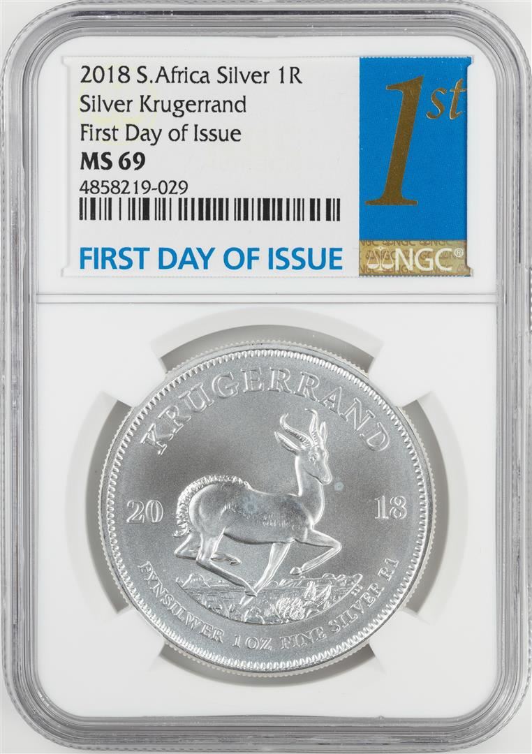 2018 South Africa Krugerrand Silver Coin NGC MS69 First Day of Issue