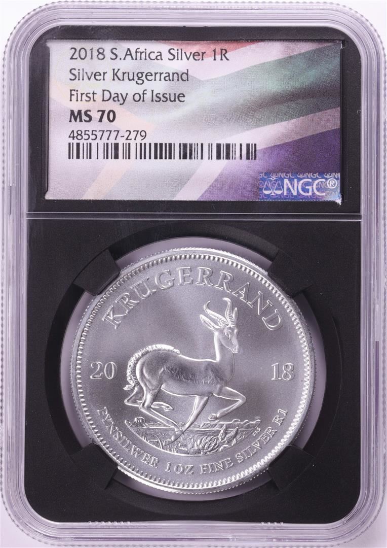 One 2018 South Africa Krugerrand Silver Coin NGC MS70 First Day of Issue. NGC Certified.