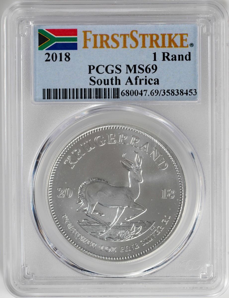One 2018 South Africa Krugerrand Silver Coin PCGS MS69 First Issue.