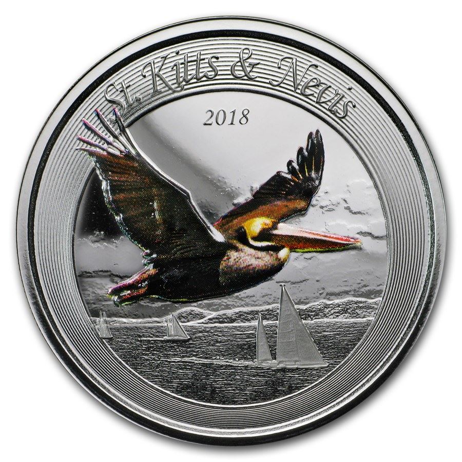 2018 St. Kitts and Nevis 1 oz Silver Pelican Proof (Colorized)