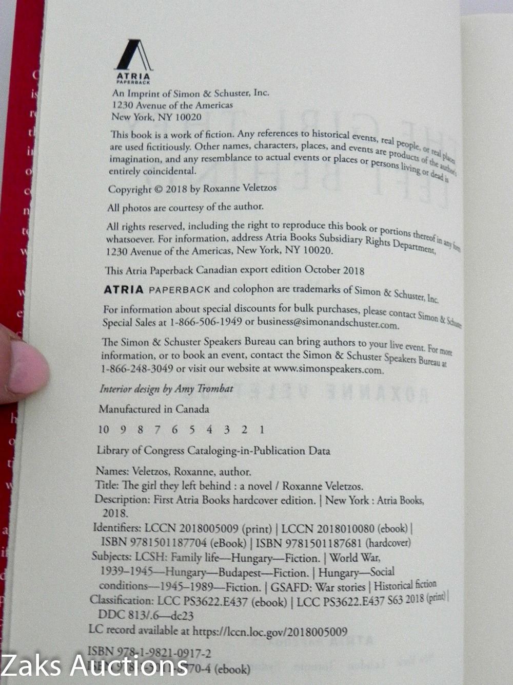 2018 THE GIRL THEY LEFT BEHIND: A NOVEL - ROXANNE VELETZOS. SOFTCOVER