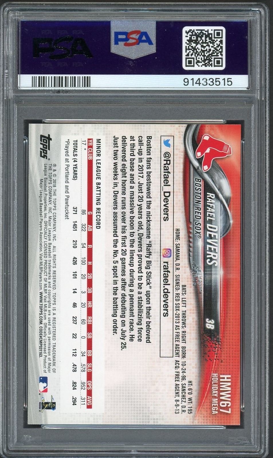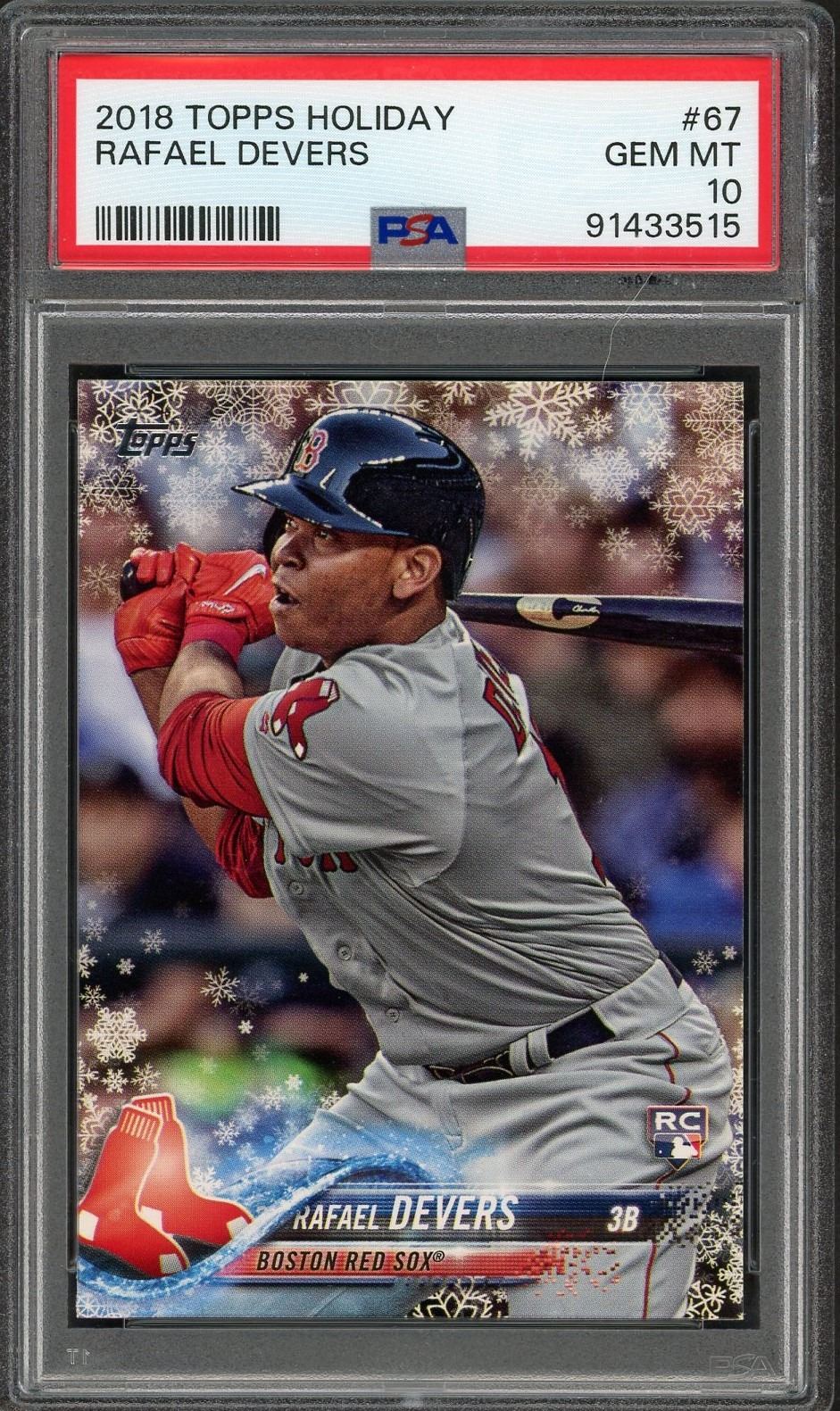 2018 Topps Holiday rookie card of for Redsox and current Giants star infielder Rafael Devers graded a gem mint 10 by PSA!