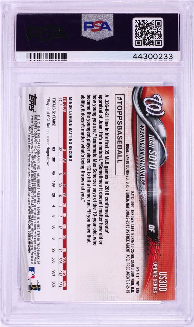 2018 Topps Update Batting Juan Soto MLB Card #US300 PSA Gem Mint 10
