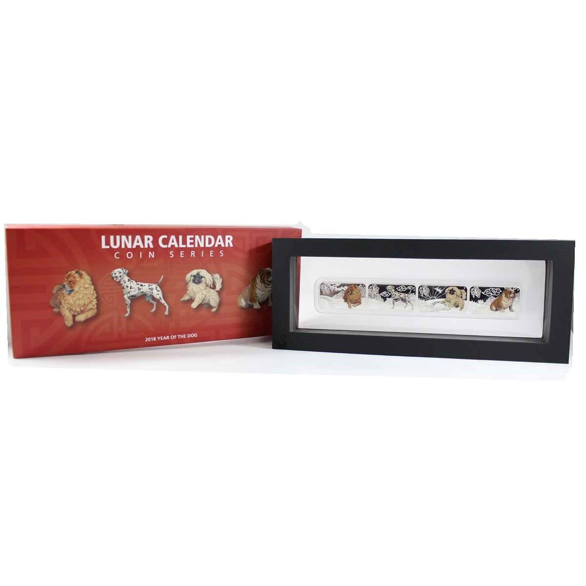 2018 Tuvalu $1 Year of the Dog Proof Rectangular 4-coin Fine Silver Set in Frame (TAX Exempt)