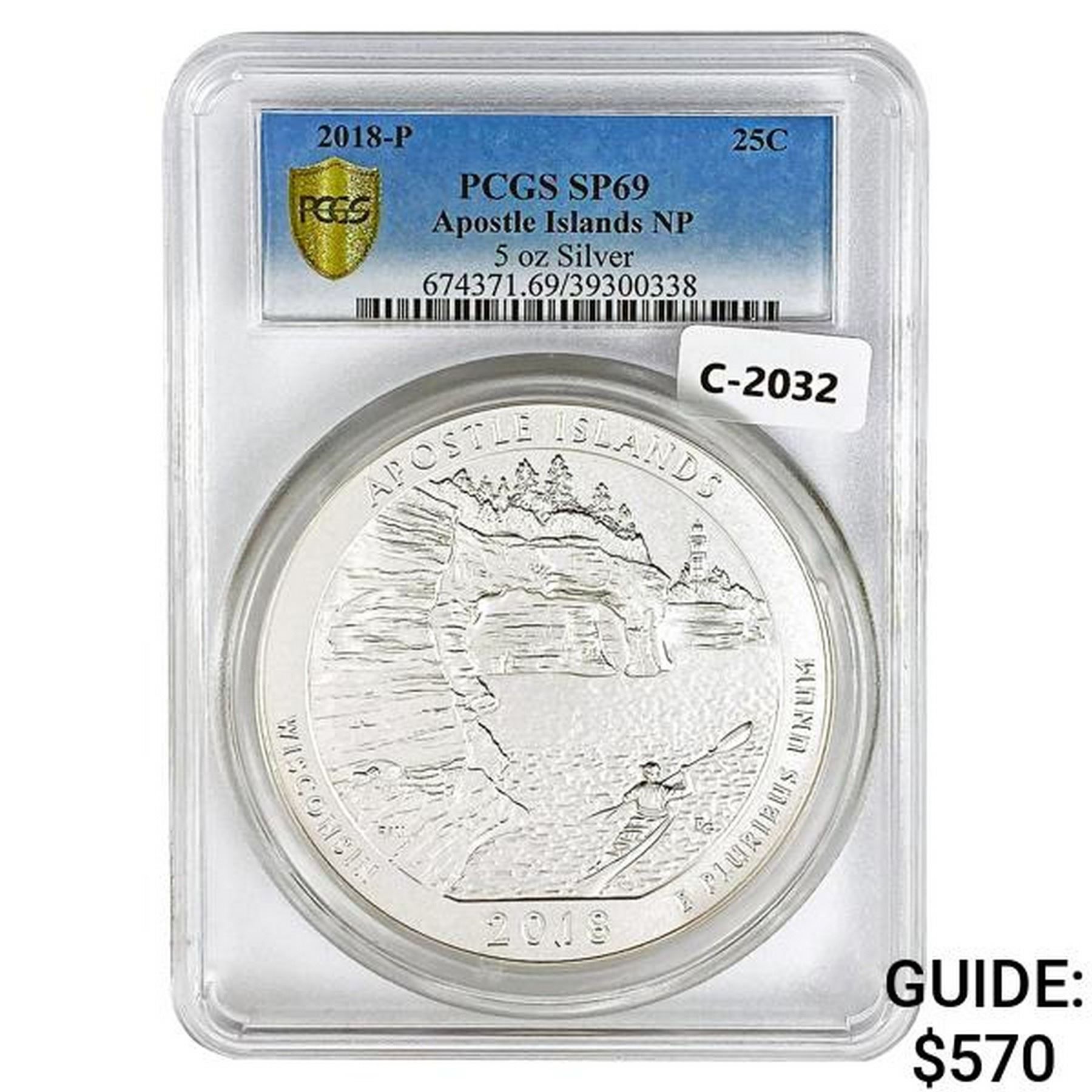 2018 US 5oz Silver Apostle Isles Round PCGS SP69