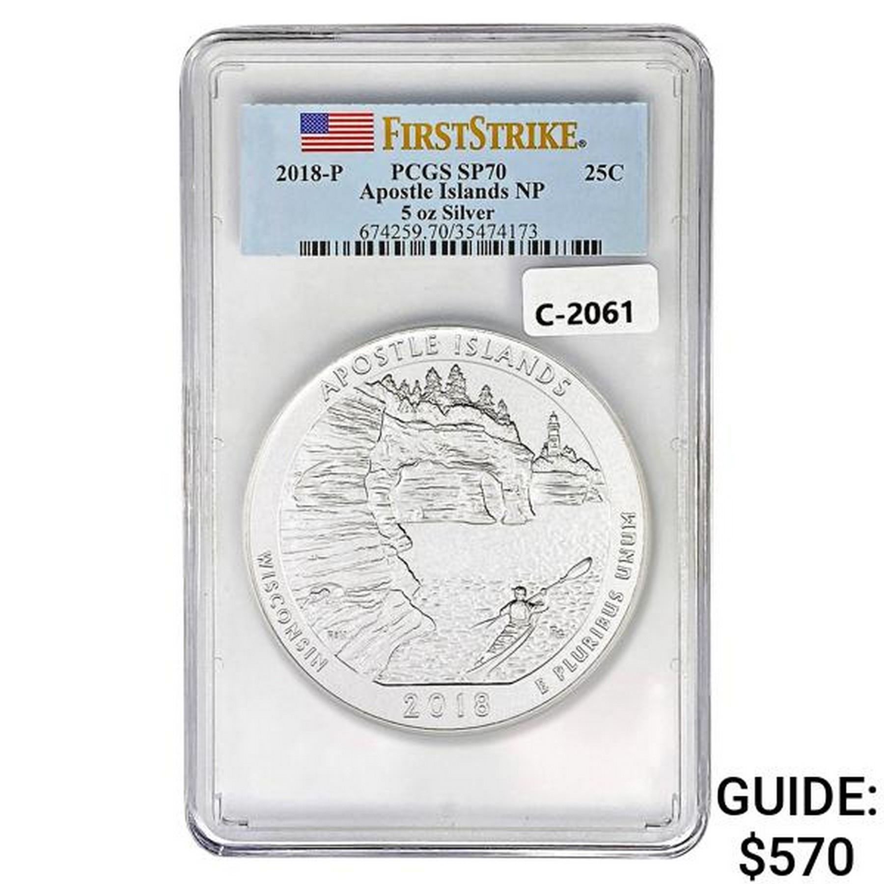2018 US 5oz Silver Apostle Isles Round PCGS SP70