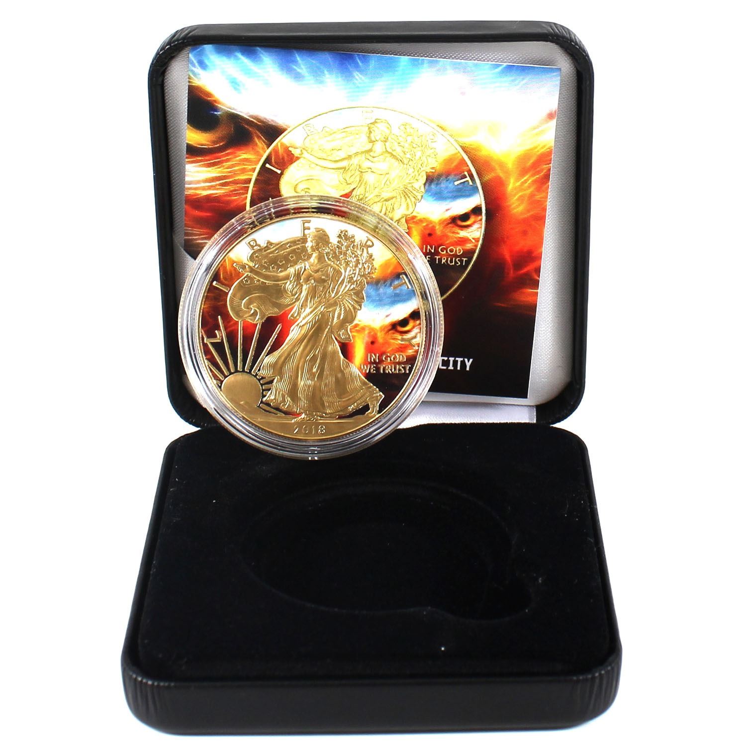 2018 USA $1 Coloured/Gilt 'Fiery Bald Eagle' 1oz Fine Silver Eagle (Tax Exempt) Coin comes encapsulated with a serialized COA and display box. Mintage 073/500.