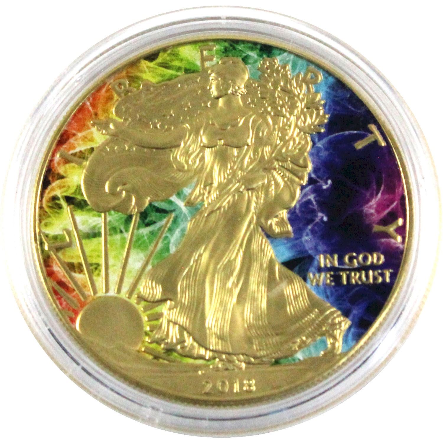 2018 USA 1oz Rainbow Smoke Coloured & Gilded .999 Fine Silver Eagle in Capsule. (TAX Exempt)
