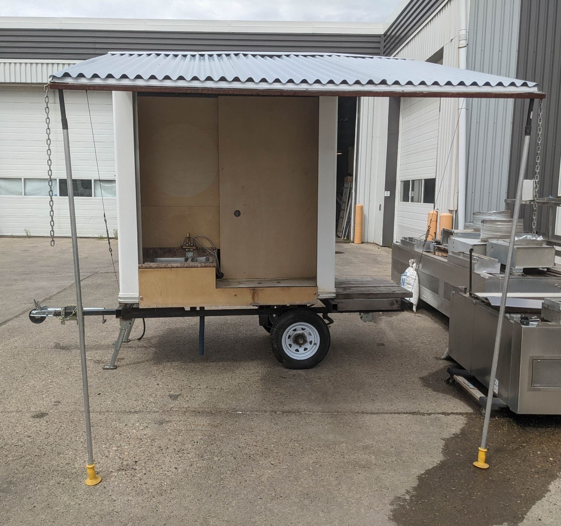 MOBILE MARKET BOOTH WITH BUILT IN HANDWASHING STATION. THIS IS A CUSTOM MADE UNIT, USED AS A COFFEE SERVICE TRAILER. ALBERTA HEALTH APPROVED, INCLUDES SINK, WATERTANK AND HEATER. BACK HAS PLATFORM FOR GENERATOR. 11' LONG 50" WIDE 100" HIGH. OVERHANG WHEN OPENED IS 6' SPAN. SUBJECT TO BANK, BAILIFF OR OWNER APPROVAL. **ALL ITEMS MUST BE REMOVED BY 5PM MONDAY, SEPTEMBER 12TH, 2022. ALL REMAINING ITEMS WILL BE SUBJECT TO A $6.00 PER DAY STORAGE CHARGE. ANY ITEMS REMAINING AFTER MONDAY, SEPTEMBER 26TH, 2022 WILL BE CONSIDERED FORFEITED. NO REFUNDS WILL BE ISSUED FOR FORFEITED ITEMS.** TO SCHEDULE A PICK UP APPOINTMENT CLICK HERE