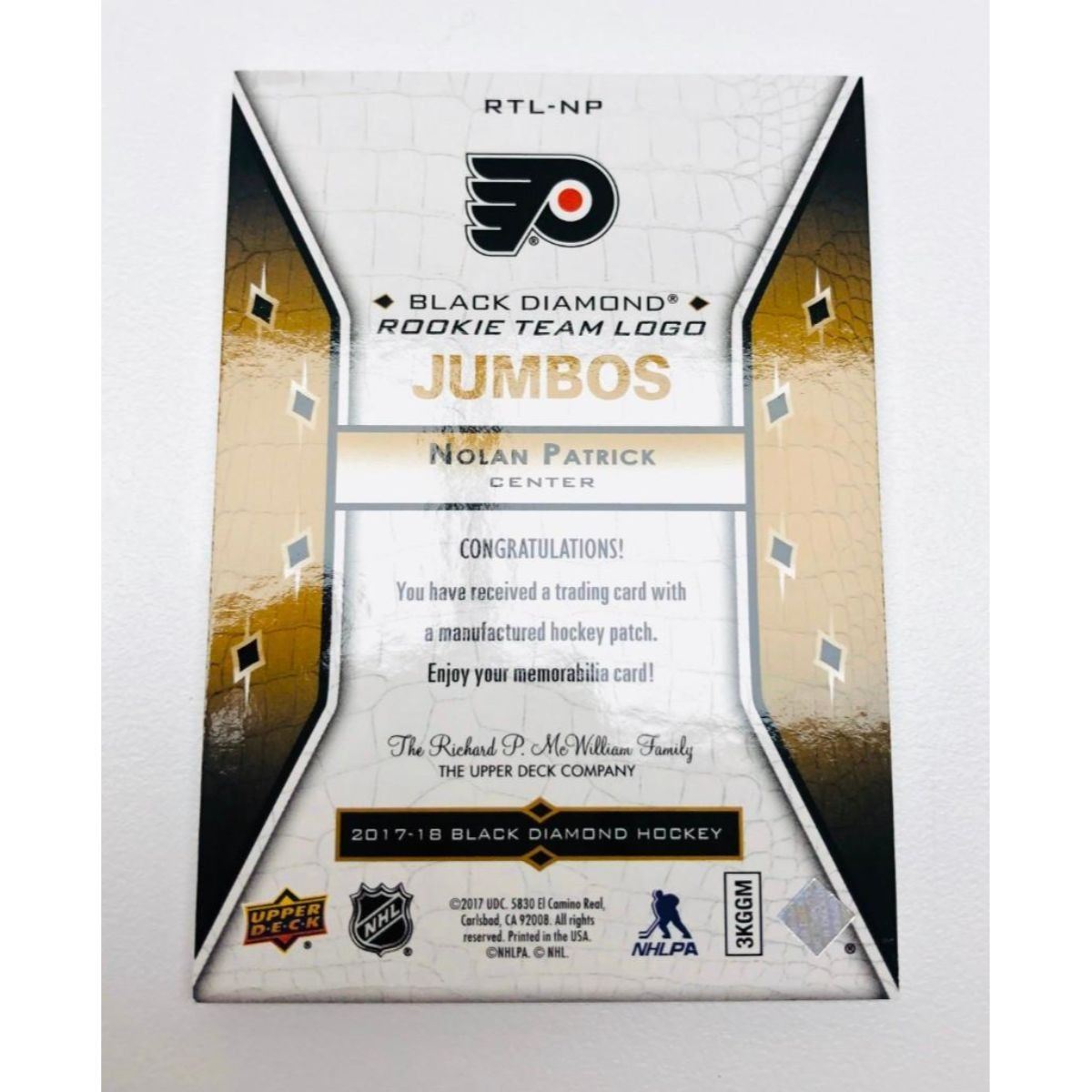 2018 Upper Deck Jumbos Rookie Nolan Patrick Hockey Patch Card. Please View Photos For Further Details.Â