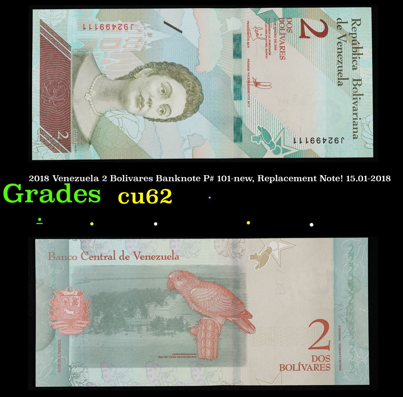 2018 Venezuela 2 Bolivares Banknote P# 101-new, Replacement Note! 15.01-2018 Grades Select CU.