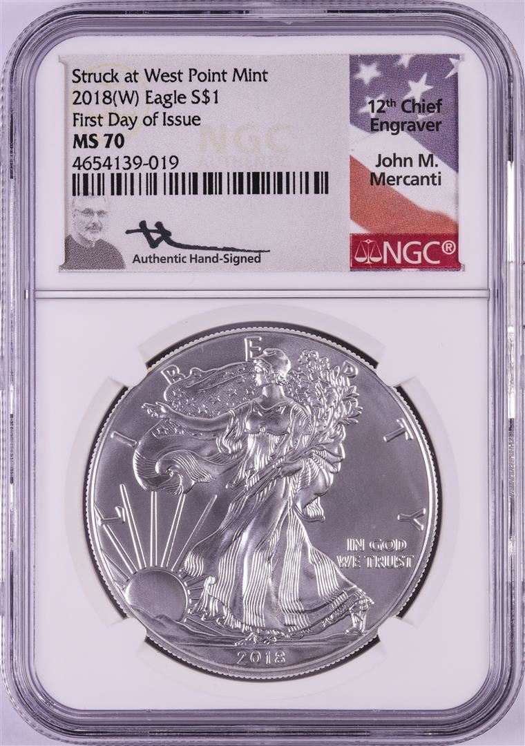 2018(W) $1 American Silver Eagle Coin NGC MS70 FDOI Mercanti Signature