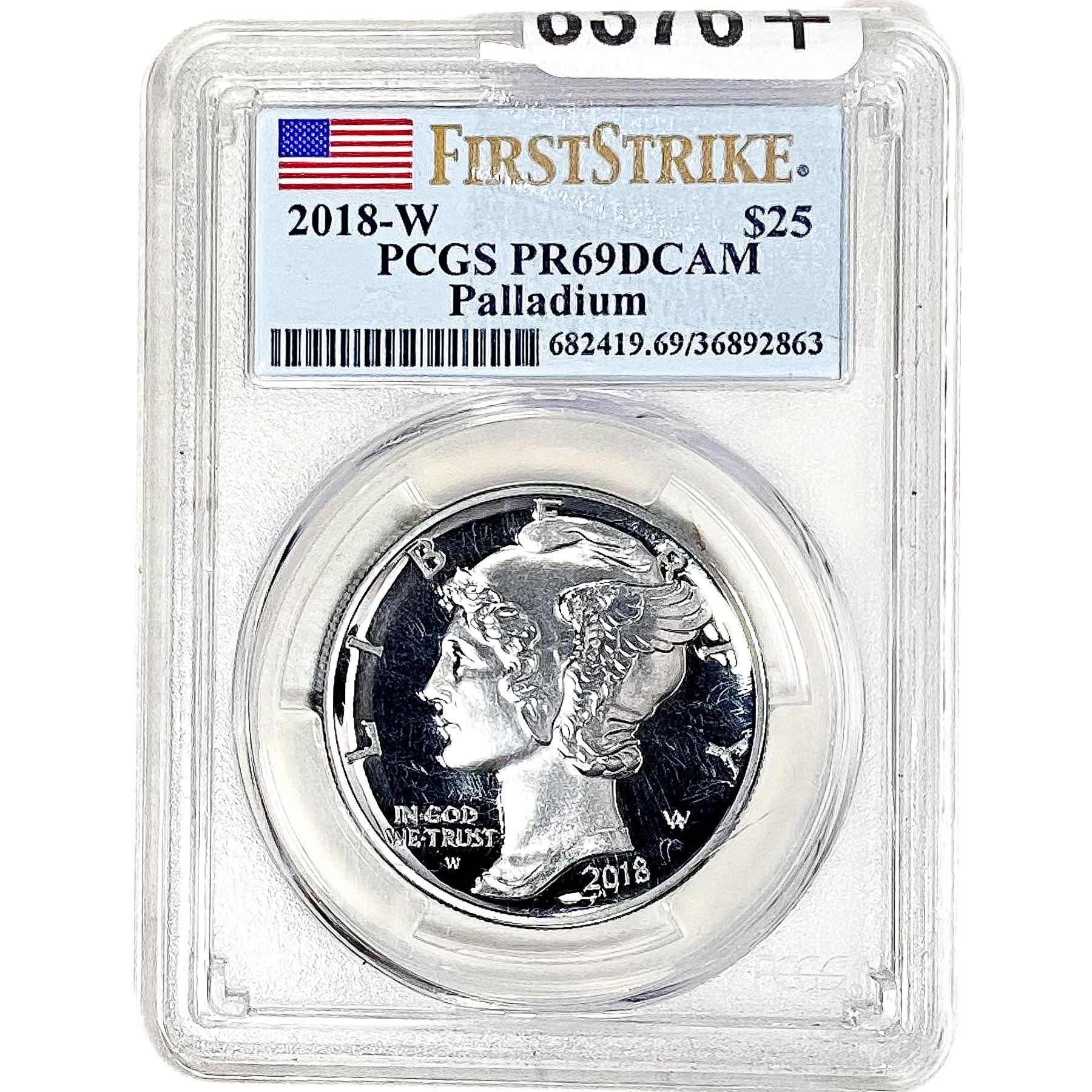 2018-W 1 OZ Palladium Mercury $25 PCGS PR69 DCAM