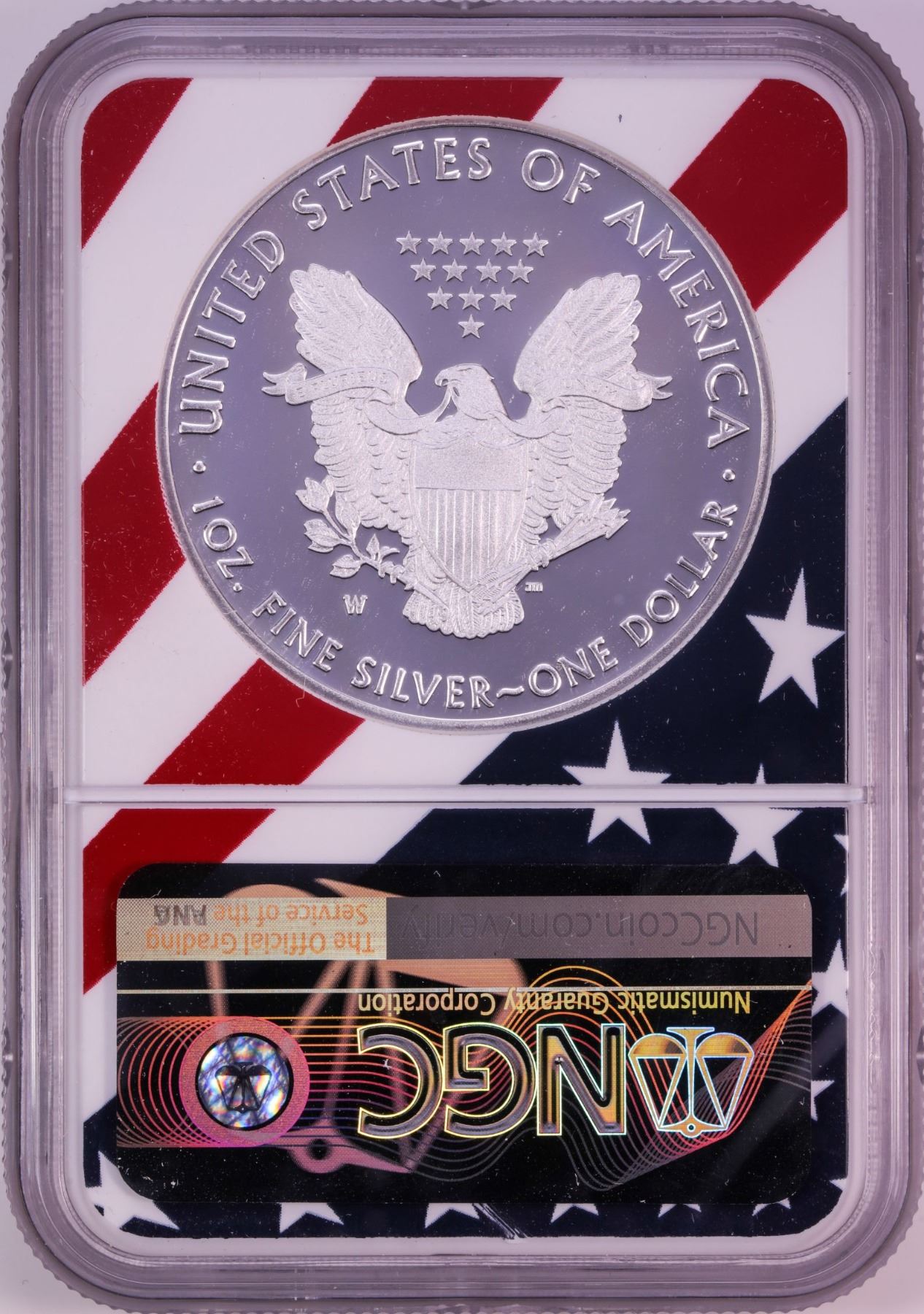 One 2018-W $1 Proof American Silver Eagle Coin NGC PF69 Ultra Cameo Congratulations Flag.