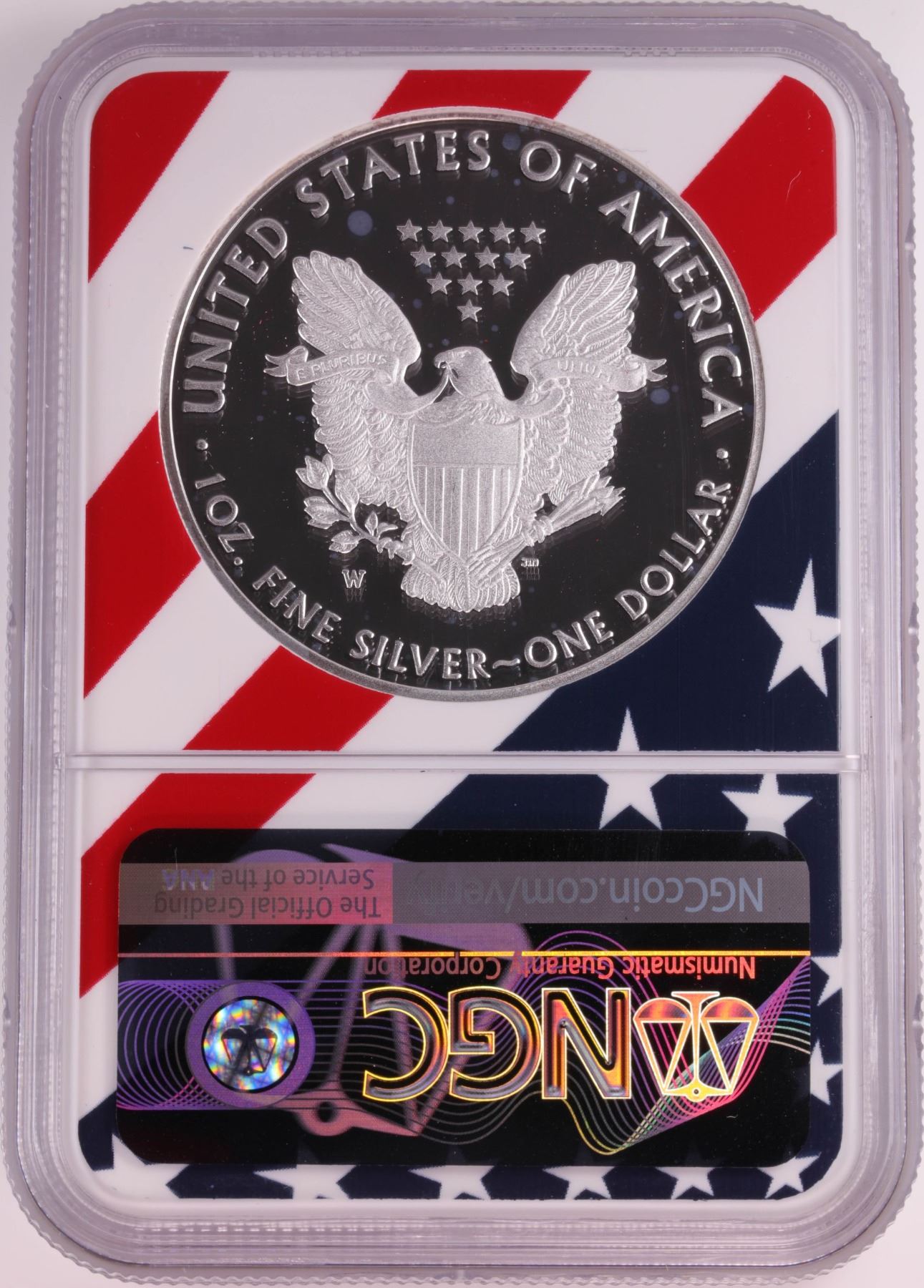 One 2018-W $1 Proof American Silver Eagle Coin NGC PF69 Ultra Cameo Congratulations Flag.
