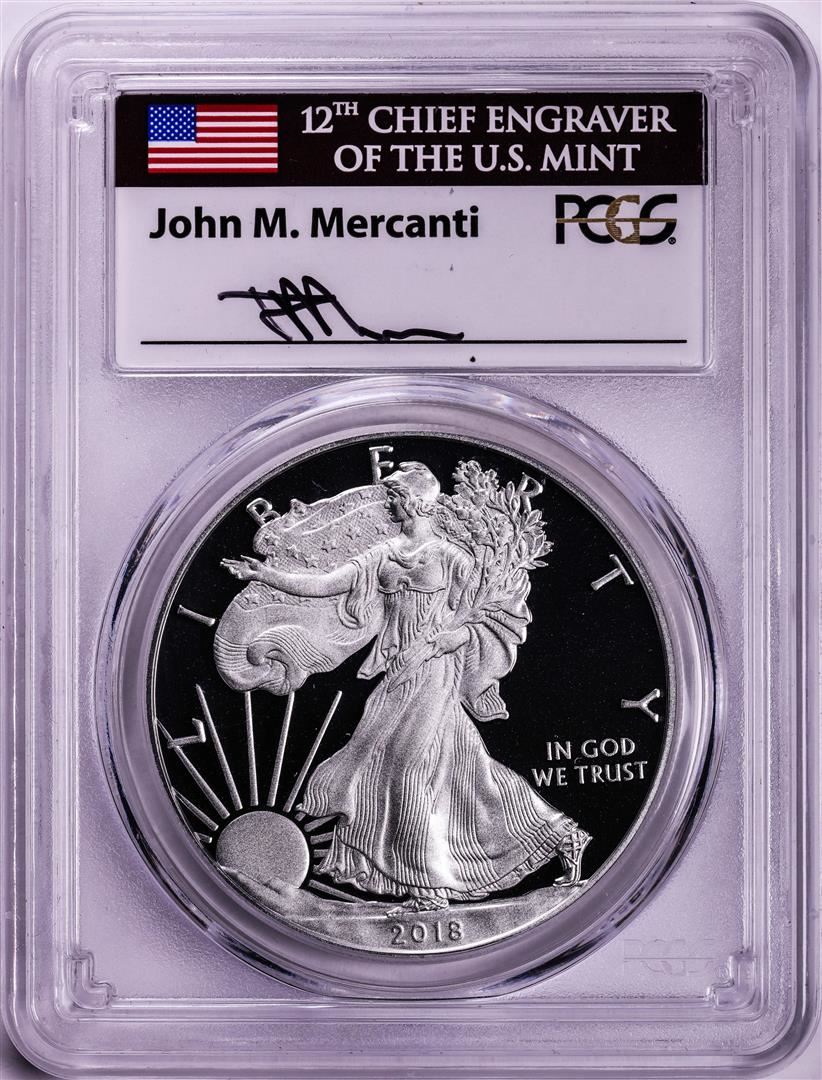 2018-W $1 Proof American Silver Eagle Coin PCGS PR70DCAM FDOI Mercanti Signature
