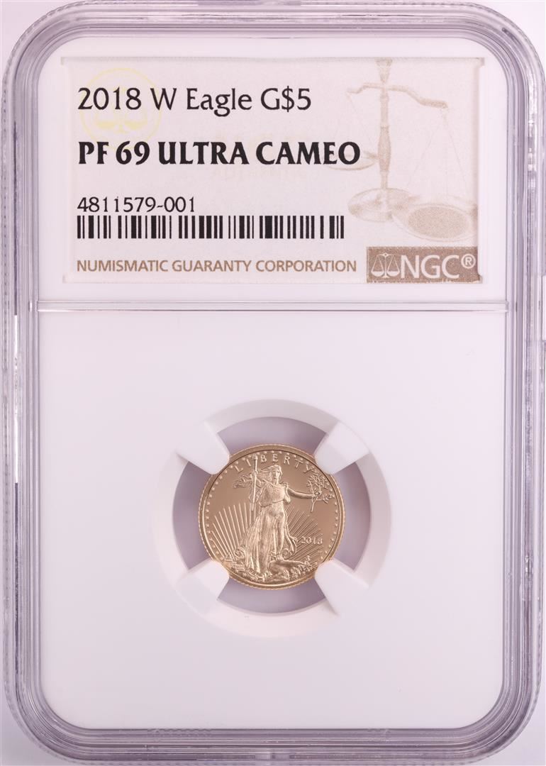 One 2018-W $5 Proof American Gold Eagle Coin NGC PF69 Ultra Cameo. NGC Certified.