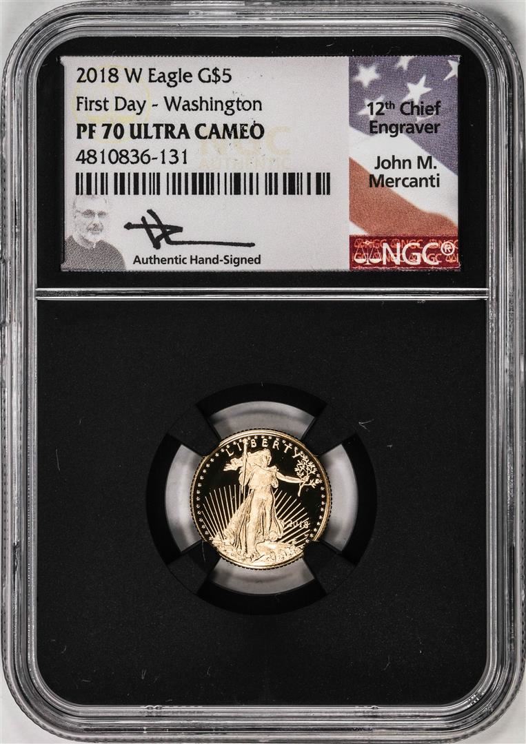 2018-W $5 Proof American Gold Eagle Coin NGC PF70 Ultra Cameo First Day Mercanti Signed