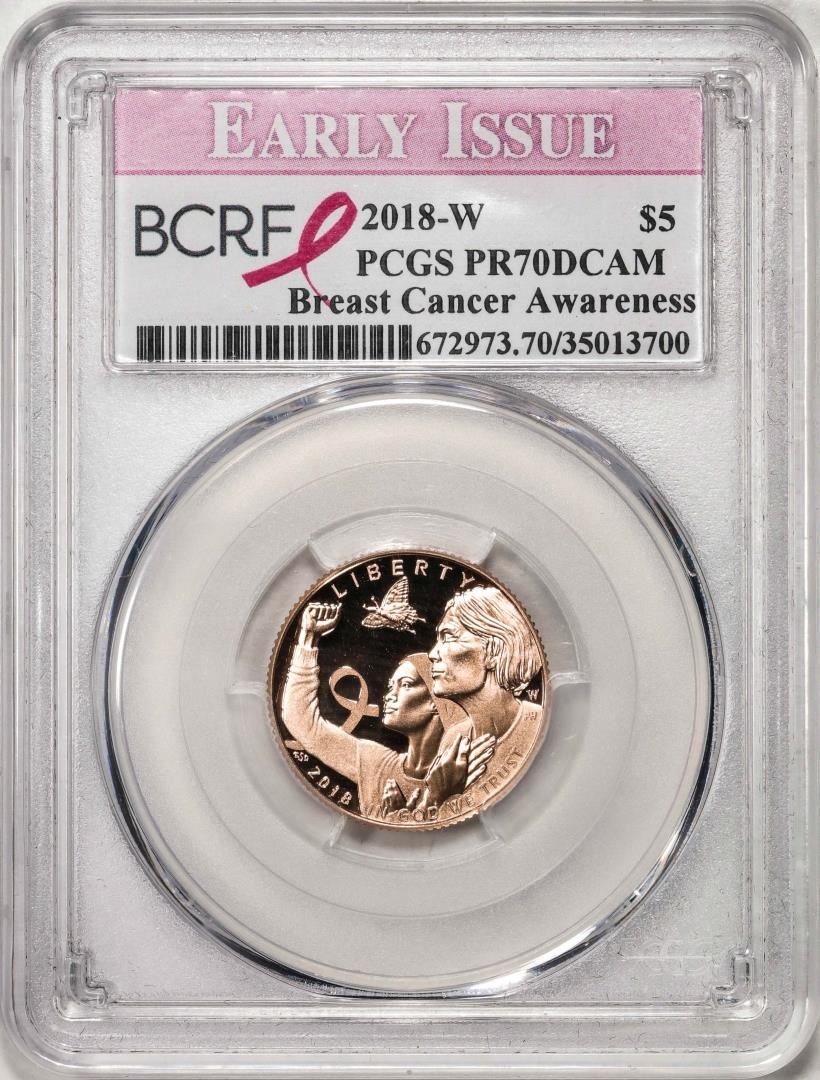 2018-W $5 Proof Breast Cancer Awareness Commemorative Gold Coin PCGS PR70DCAM