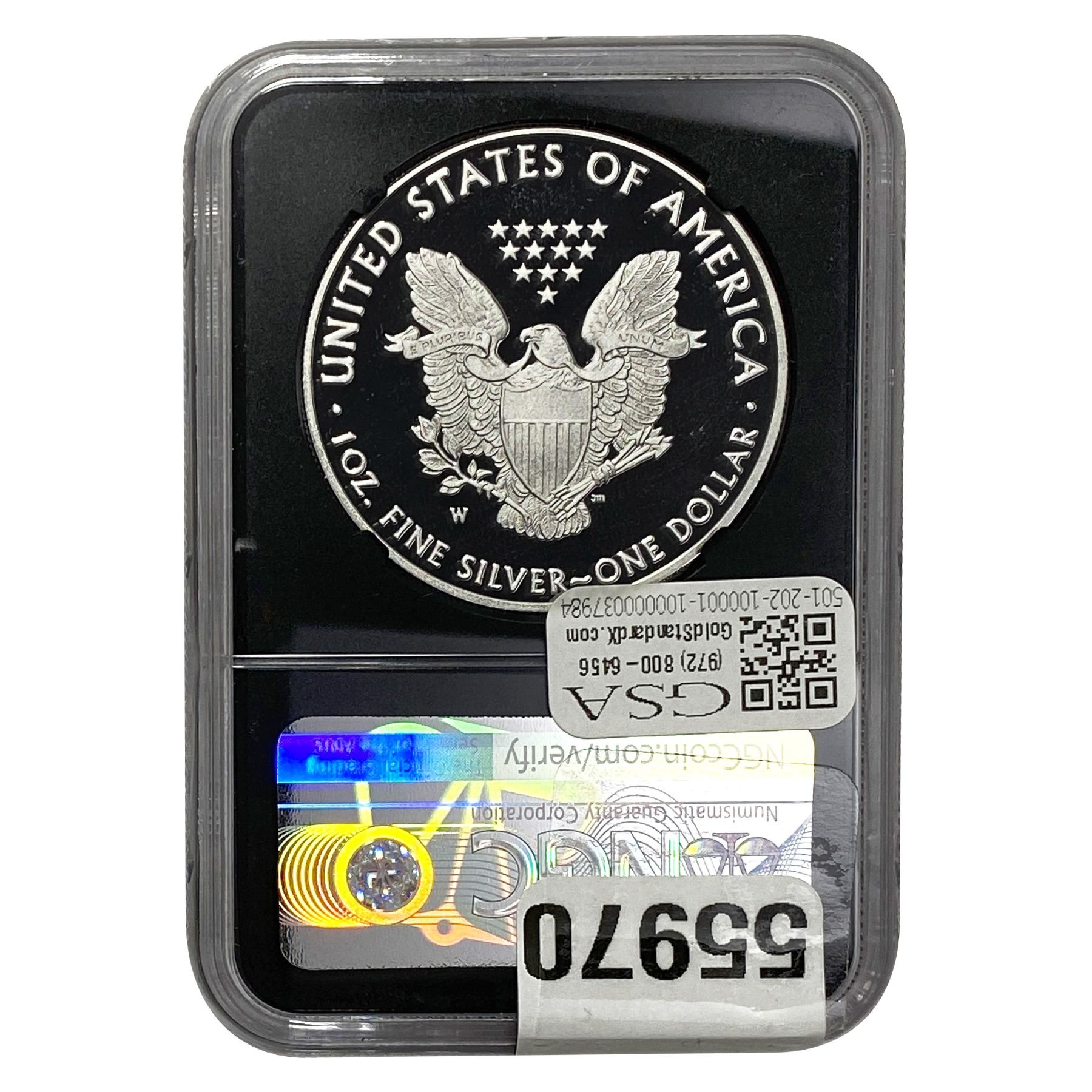 e. Coins sold referencing a third-party grading service are sold “AS IS” without any express or implied warranty, except for a guarantee by GSA that they are genuine. Removal or alteration of the holder, voids all of Bidder’s claims concerning that Product. Certain warranties may be available from the grading services and Bidders are referred to them for further details: Numismatic Guaranty Corporation (NGC), PO Box 4776, Sarasota, FL 34230, www.ngccoin.com/services/writtenguarantee.asp; Professional Coin Grading Services (PCGS), PO Box 9458, Newport Beach, CA 92658, www.pcgs.com/guarantee.html; ANACS, 6555 S. Kenton St., Ste. 303, Englewood, CO 80111; and Independent Coin Grading Co. (ICG), 7901 East Bellview, Ave., Suite 50, Englewood, CO 80111.