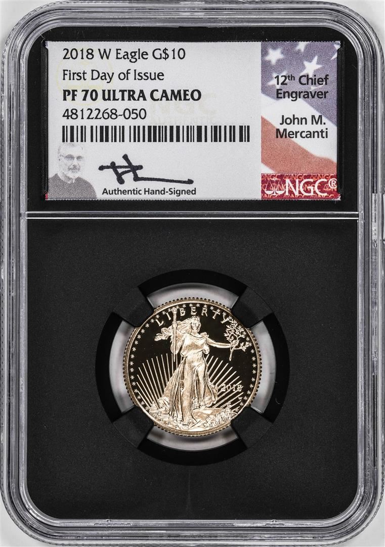 2018-W Proof $10 American Gold Eagle Coin NGC PF70 Ultra Cameo Mercanti Signed FDOI