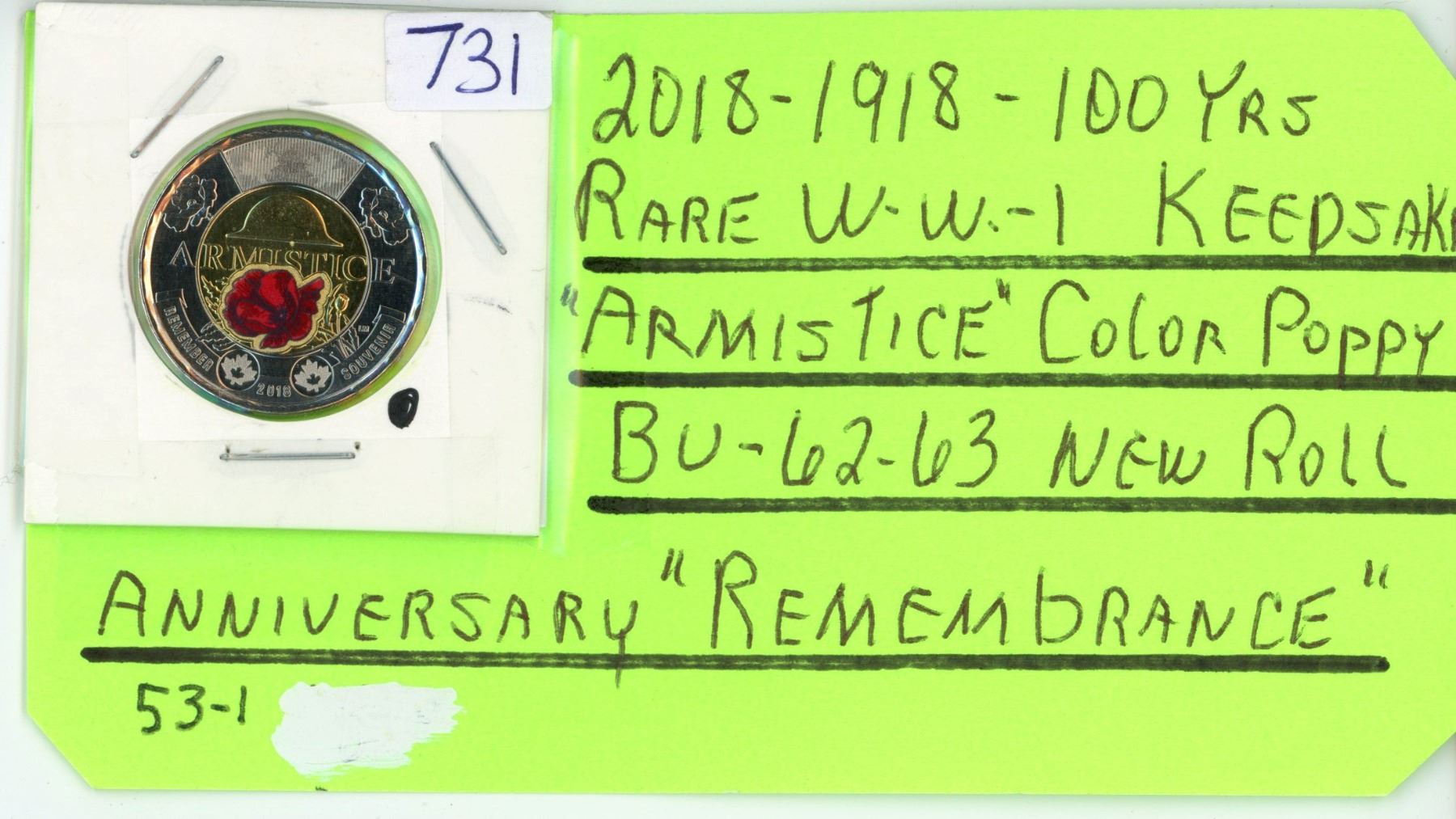 2018 WWI "armistice" Canadian 2 dollar coin