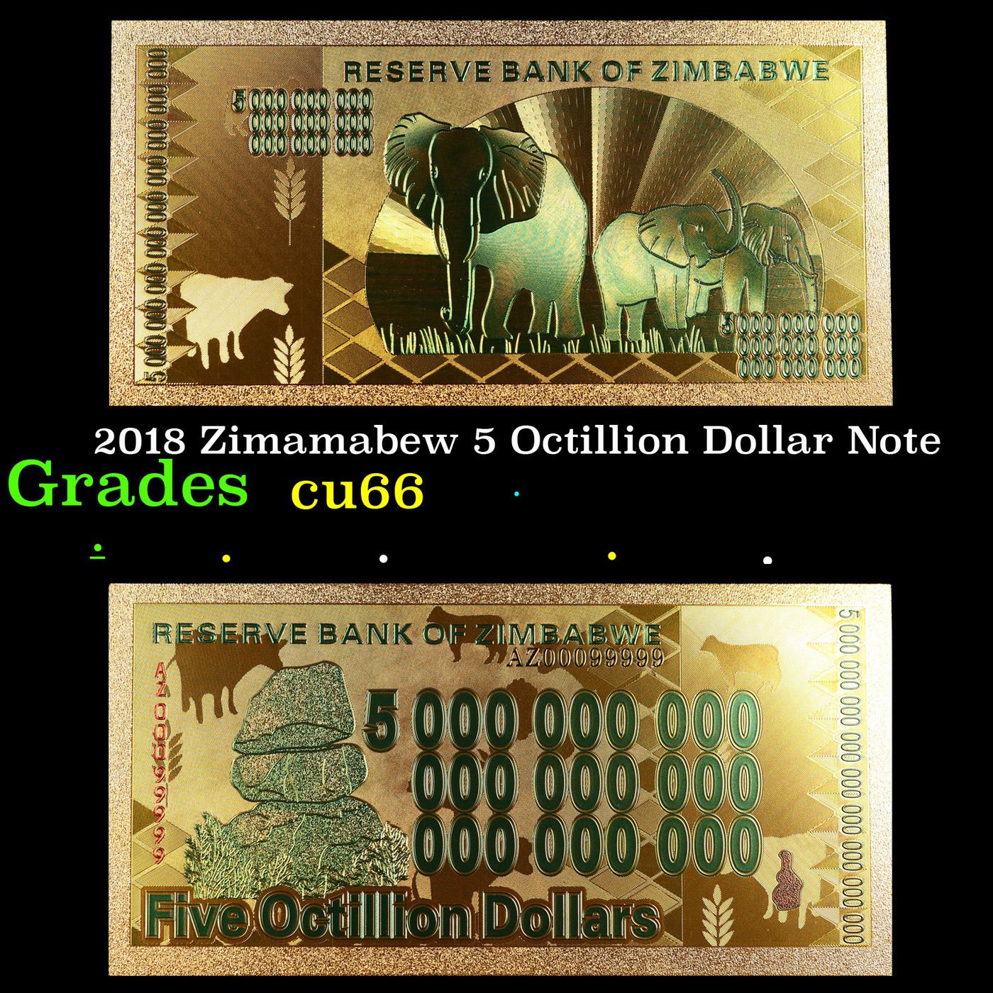 2018 Zimamabew 5 Octillion Dollar Note Grades Gem+ CU.