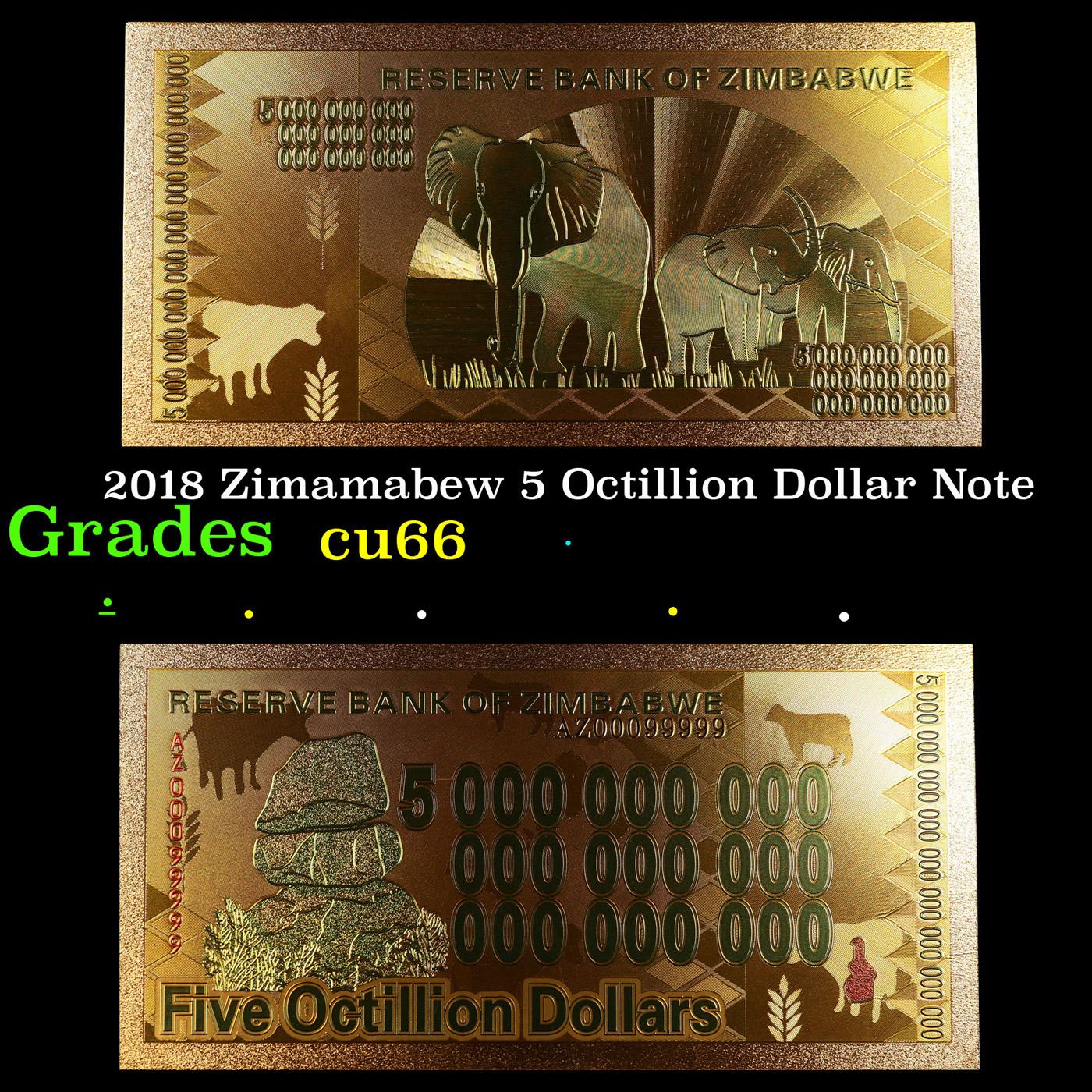 2018 Zimamabew 5 Octillion Dollar Note Grades Gem+ CU.