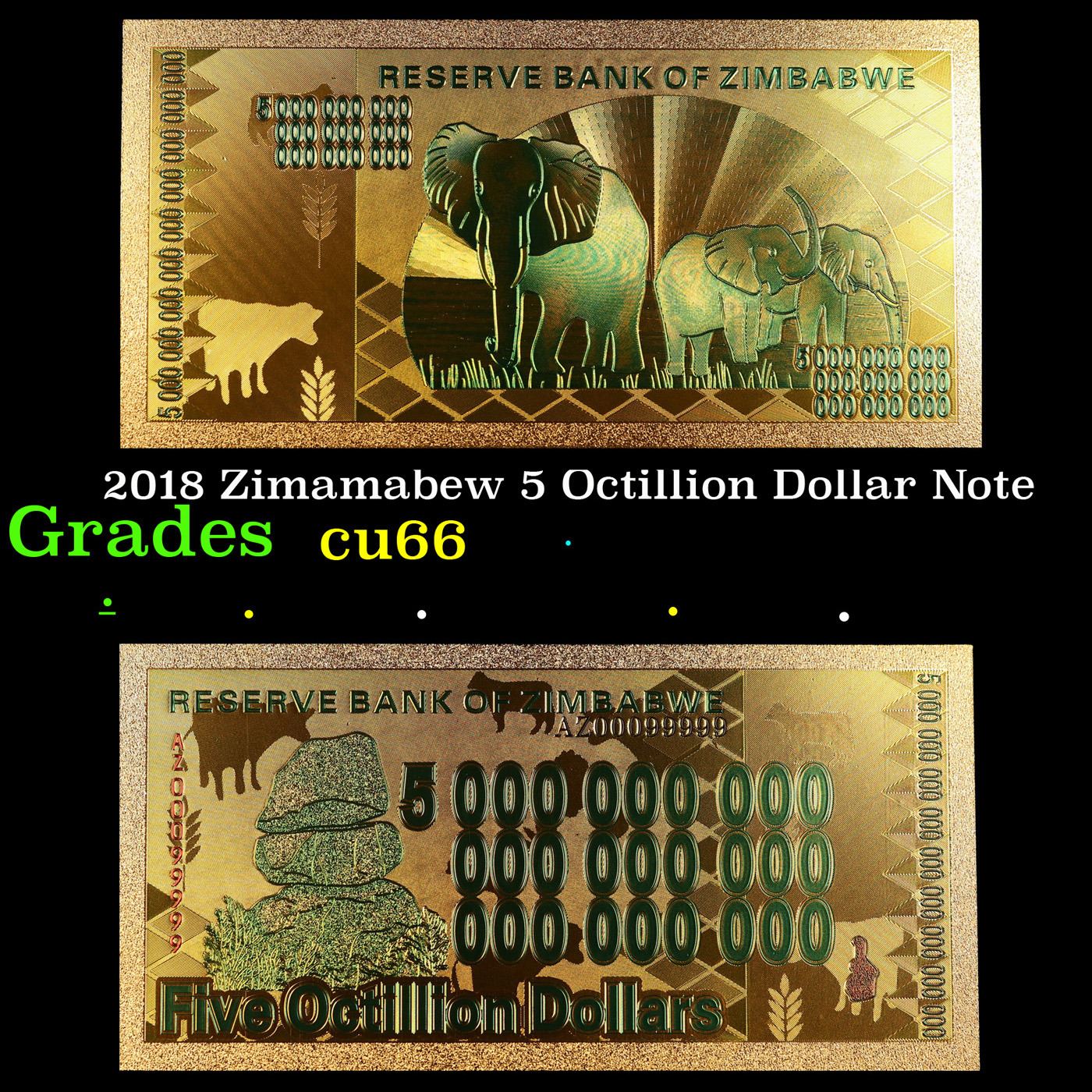 2018 Zimamabew 5 Octillion Dollar Note Grades Gem+ CU.