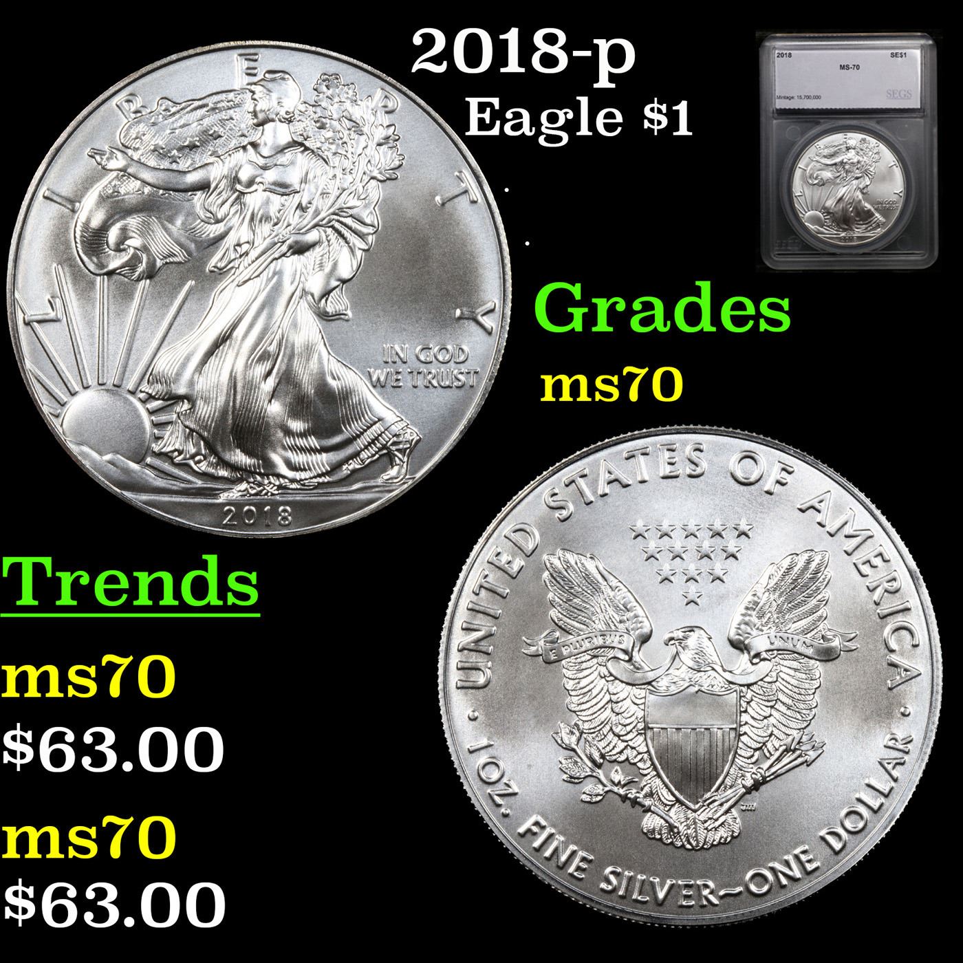2018-p Silver Eagle Dollar $1 Graded ms70 By SEGS.
