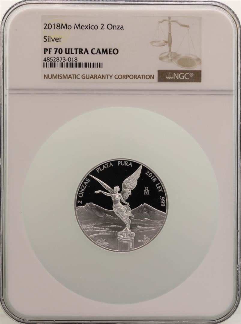 One 2018Mo Mexico 2 Onza Libertad Silver Proof Coin NGC PF70 Ultra Cameo. NGC Certified.