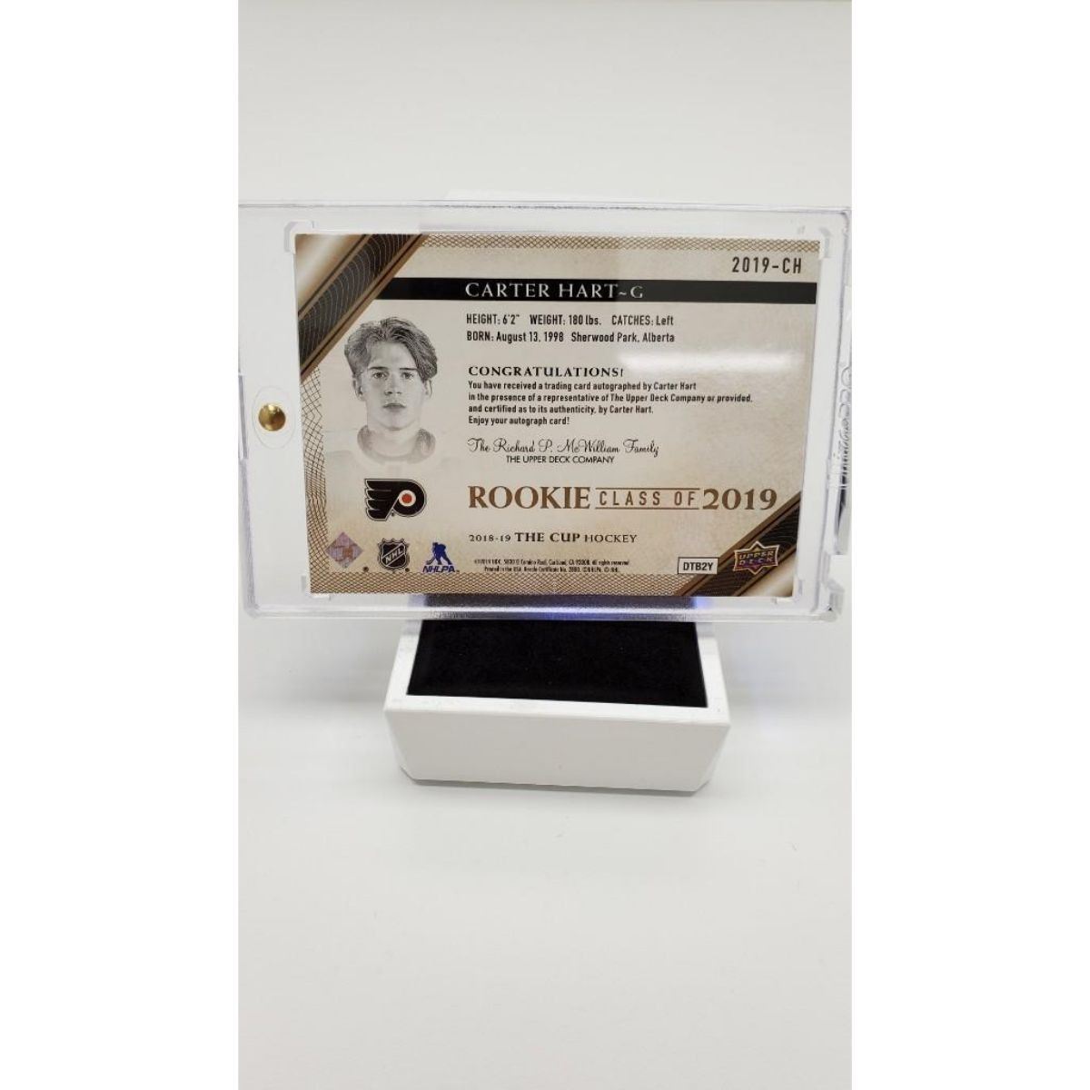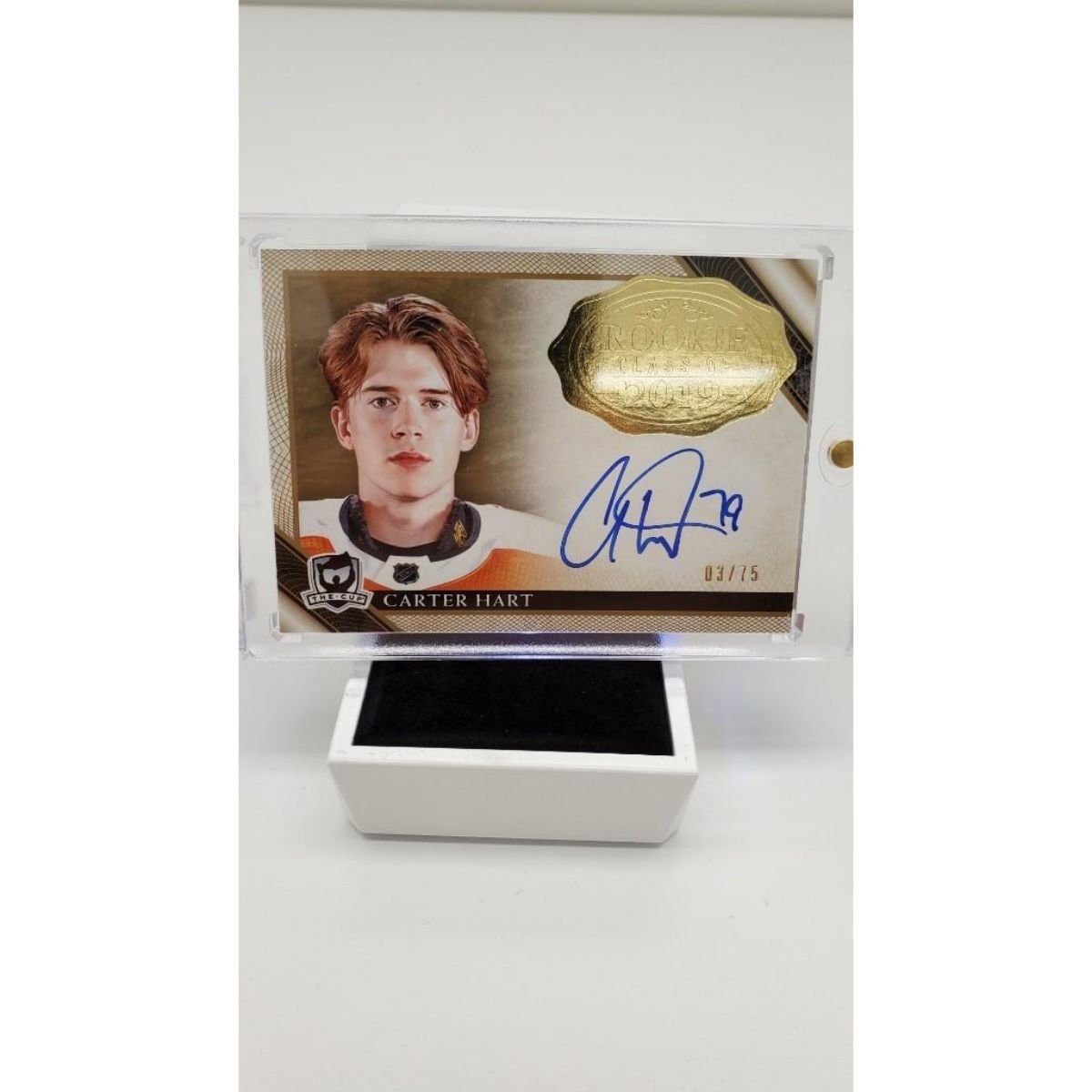 For Auction Is AÂ 2019 03/75 *Signed!* Upper Deck Carter Hart *Rookie Class Of 2019 - Gold* Please View Photos For More Details.