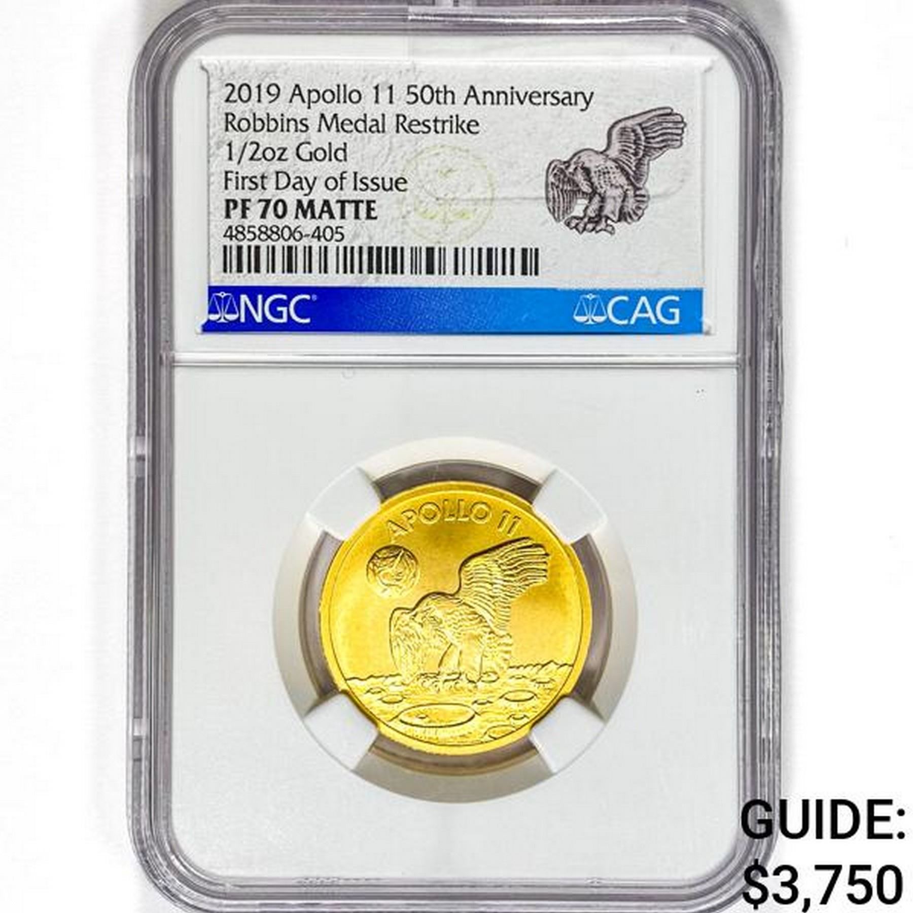 2019 1/2oz. Gold Apollo 11th NGC PF70 Matte, Restr