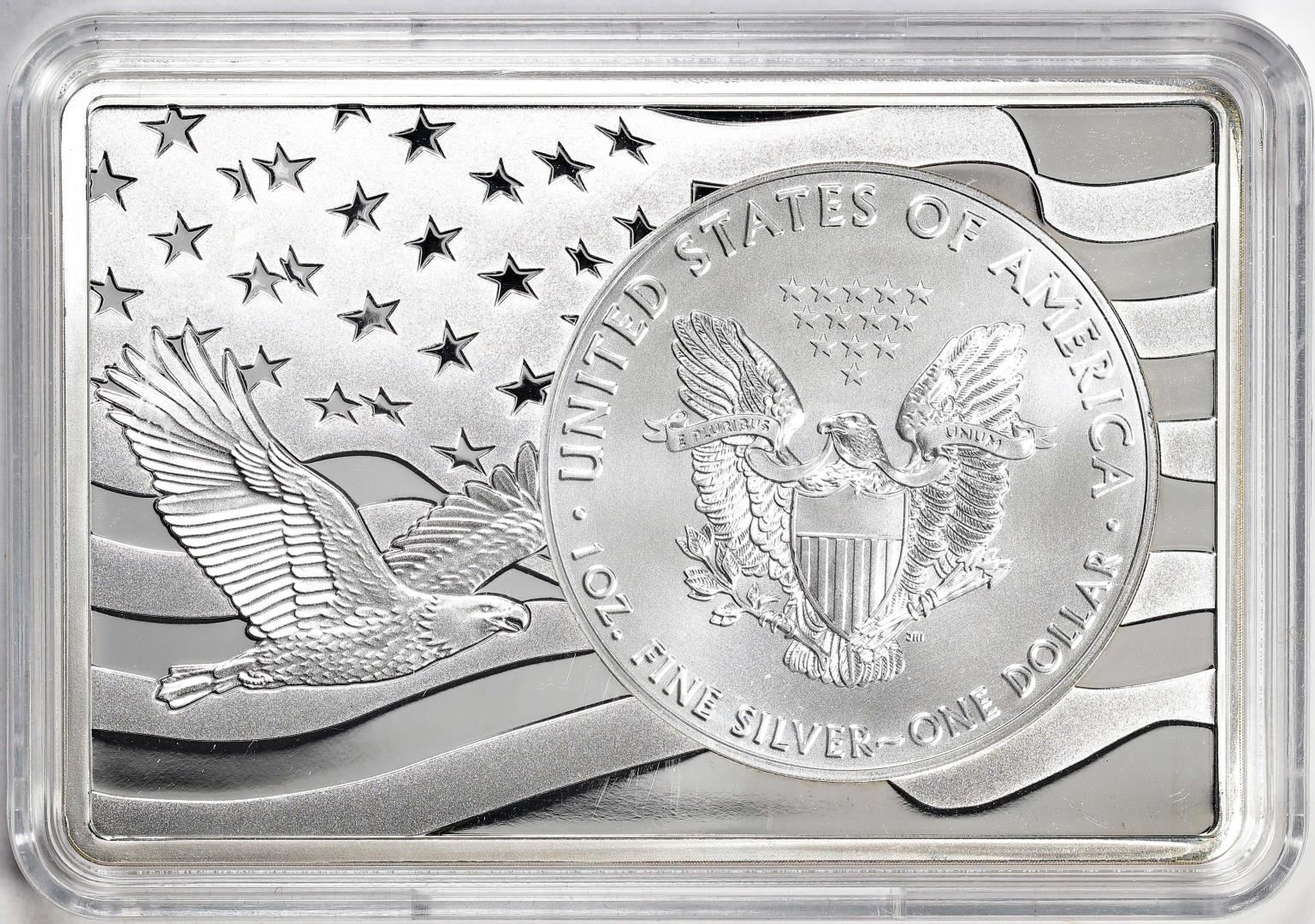 One 2019 $1 American Silver Eagle Coin & 2oz Silver Bar Set.