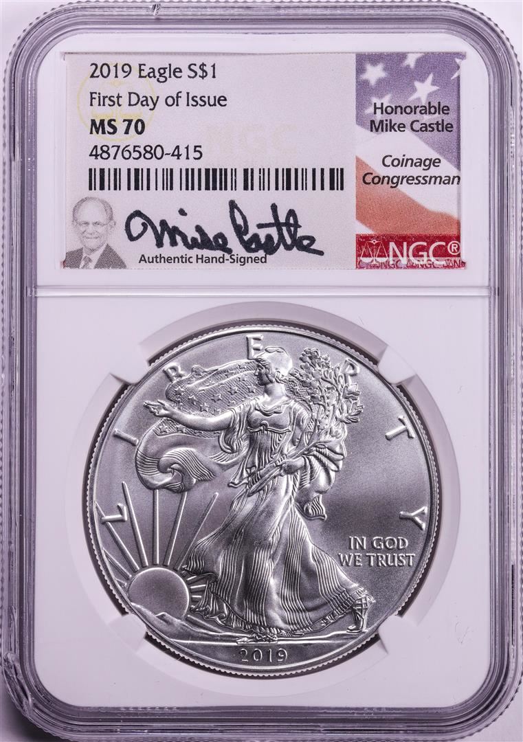 2019 $1 American Silver Eagle Coin NGC MS70 FDOI Mike Castle Signature