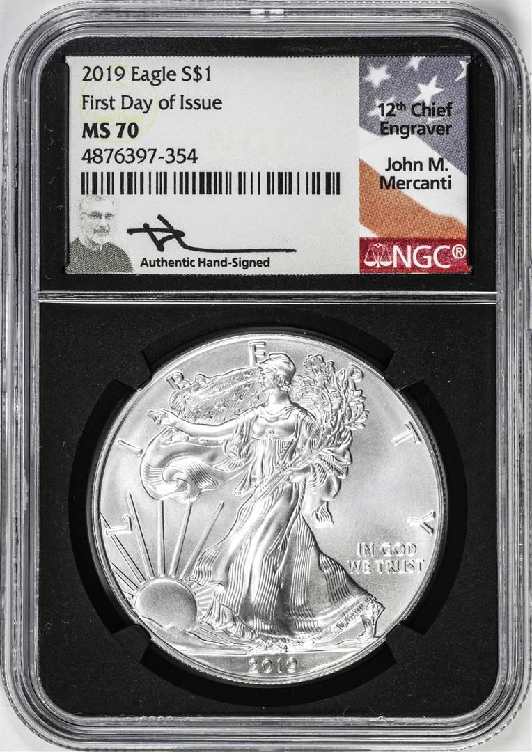 2019 $1 American Silver Eagle Coin NGC MS70 Mercanti Signature First Day of Issue